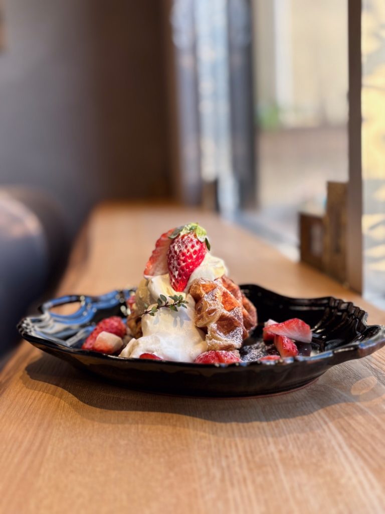焼きたてクロッフルに、みずみずしい完熟いちごをたっぷりと。